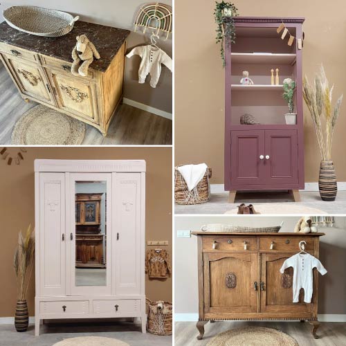 Tussen de shops die wij tonen bij Kinderkamerstylist.nl zitten een aantal shops die meubels opknappen en daarna weer verkopen. Je kan zelf op Marktplaats een oude kast kopen en opknappen (leuk!) maar je kan zo'n sfeervolle kast ook kant en klaar kopen, bij 1 van die webshops. Zij maken hem vaak weer perfect in orde. Fixen de slotjes, maken dat de lades etc weer goed lopen en gebruiken verf op waterbasis. Scheelt toch ook veel tijd en ziet er daarna ook echt goed uit. Ook een aanrader dus.
