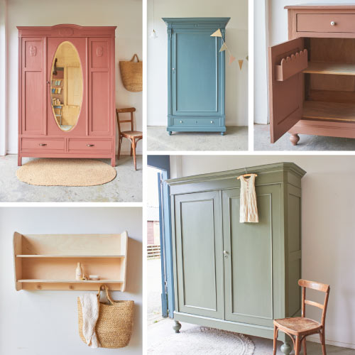 Tussen de shops die wij tonen bij Kinderkamerstylist.nl zitten een aantal shops die meubels opknappen en daarna weer verkopen. Je kan zelf op Marktplaats een oude kast kopen en opknappen (leuk!) maar je kan zo'n sfeervolle kast ook kant en klaar kopen, bij 1 van die webshops. Zij maken hem vaak weer perfect in orde. Fixen de slotjes, maken dat de lades etc weer goed lopen en gebruiken verf op waterbasis. Scheelt toch ook veel tijd en ziet er daarna ook echt goed uit. Ook een aanrader dus.